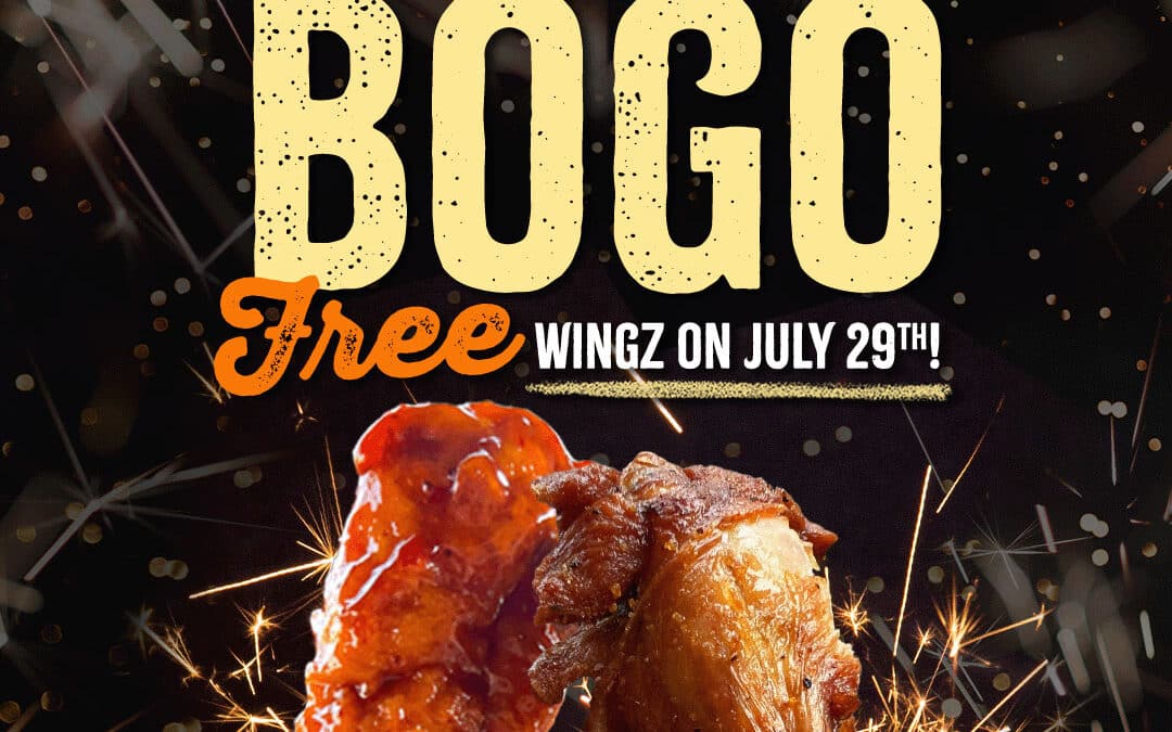 BOGO FREE ALL WINGZ for National Chicken Wing Day by brewingz2019 | Jul 24, 2023 Calendar Add to Calendar Add to Timely Calendar Add to Google Add to Outlook Add to Apple Calendar Add to other calendar Export to XML When: July 29, 2023 all-day 2023-07-29T00:00:00-05:00 2023-07-30T00:00:00-05:00