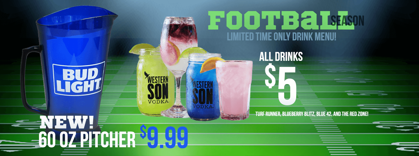 All Drinks $5: Turf Runner, Blueberry Blitz, Blue 42, and The Red Zone!
